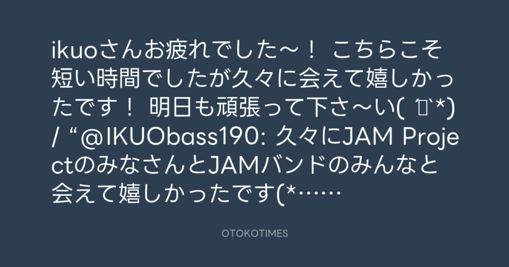 ikuoさんお疲れでした〜! こちらこそ短い時間でしたが久々に会えて嬉しかったです... -