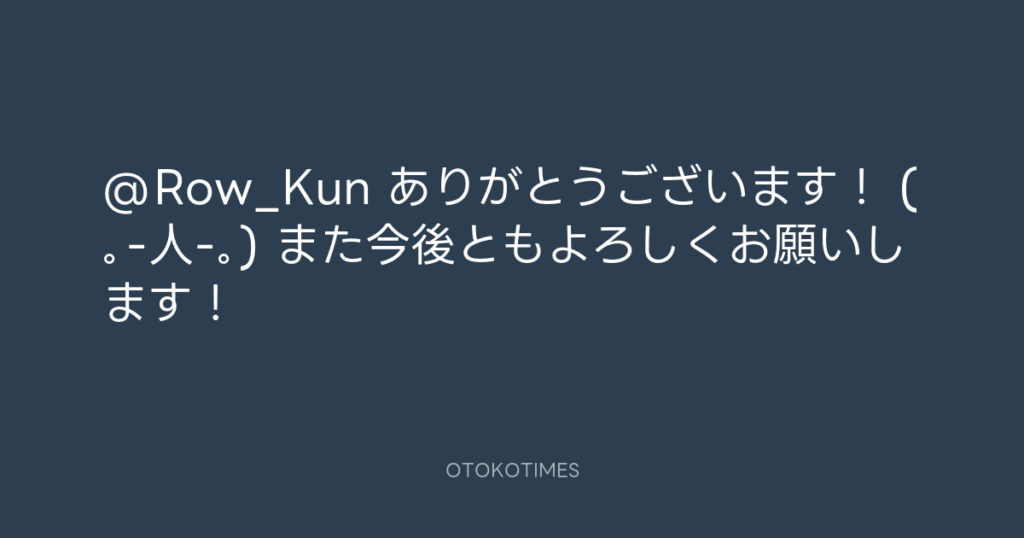 @Row_Kun ありがとうございます! (。-人-。) また今後ともよろしくお願いします! -
