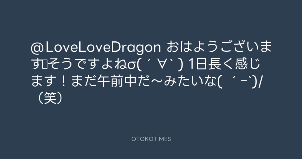 @LoveLoveDragon おはようございます☆そうですよねσ(´∀` ) 1日長く感じます!まだ... -