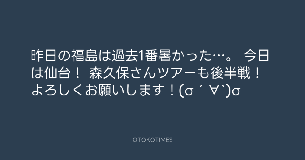 昨日の福島は過去1番暑かった…。 今日は仙台! 森久保さんツアーも後半戦! よろし... -