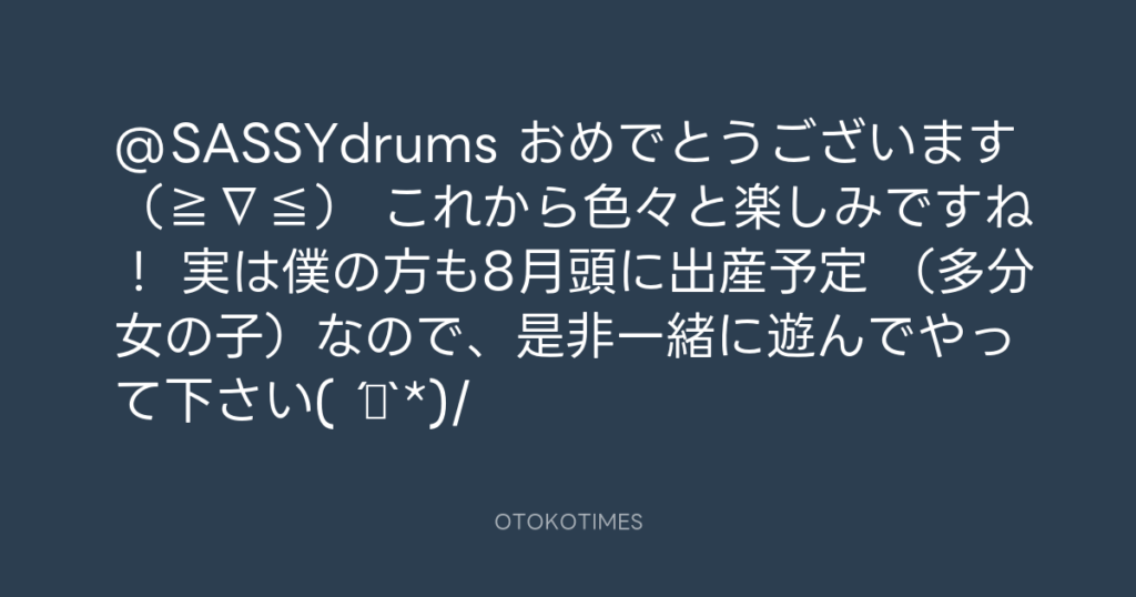 @SASSYdrums おめでとうございます(≧∇≦) これから色々と楽しみですね! 実は僕の... -