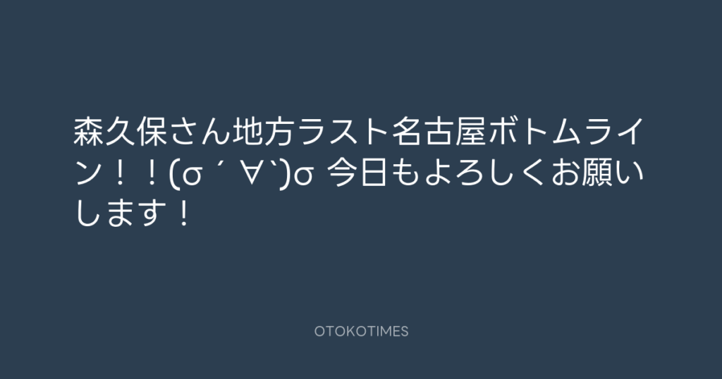森久保さん地方ラスト名古屋ボトムライン!!(σ´∀`)σ 今日もよろしくお願いします! -