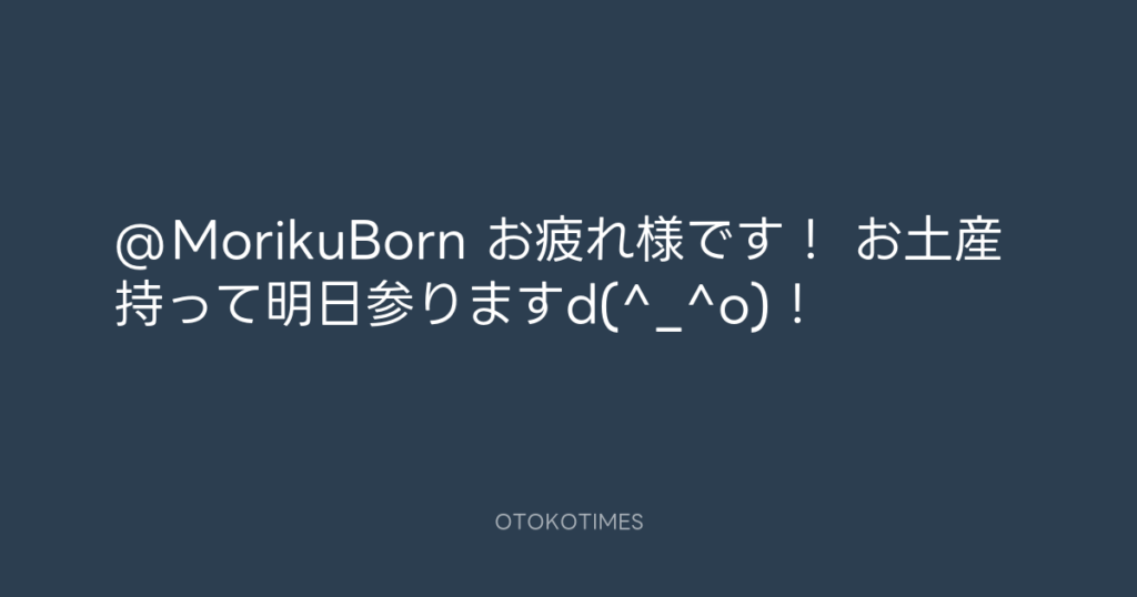 @MorikuBorn お疲れ様です! お土産持って明日参りますd(^_^o)! -