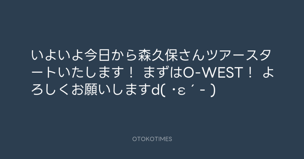 いよいよ今日から森久保さんツアースタートいたします! まずはO-WEST! よろしく... -