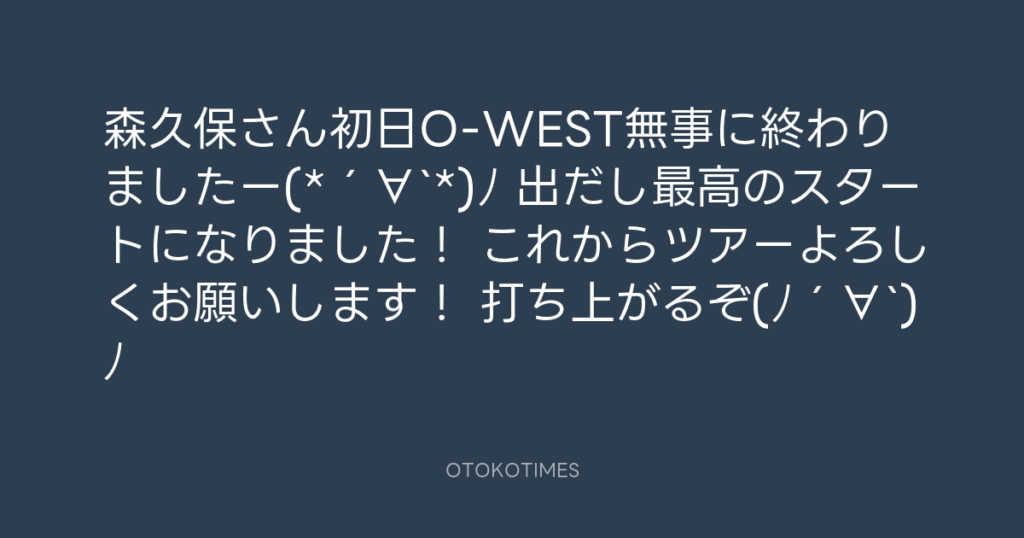 森久保さん初日O-WEST無事に終わりましたー(*´∀`*)ノ 出だし最高のスタートになりま... -