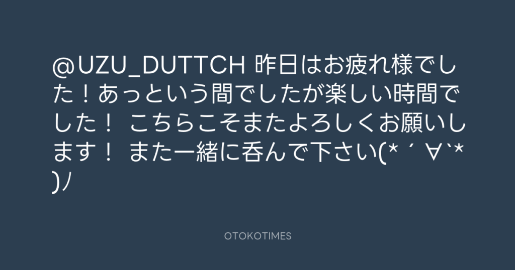 @UZU_DUTTCH 昨日はお疲れ様でした!あっという間でしたが楽しい時間でした! こち... -
