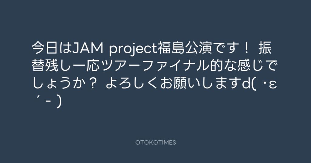 今日はJAM project福島公演です! 振替残し一応ツアーファイナル的な感じでしょう... -