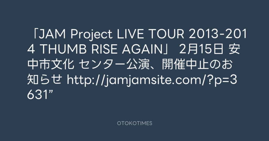 「JAM Project LIVE TOUR 2013-2014 THUMB RISE AGAIN」 2月15日 安中市文化 セン... -