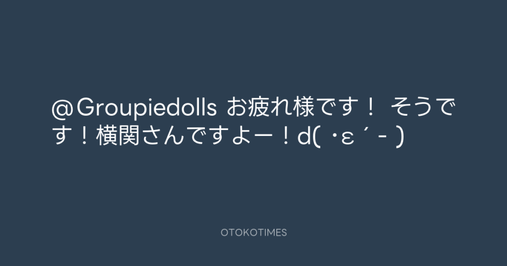 @Groupiedolls お疲れ様です! そうです!横関さんですよー!d( ・ε´- ) -