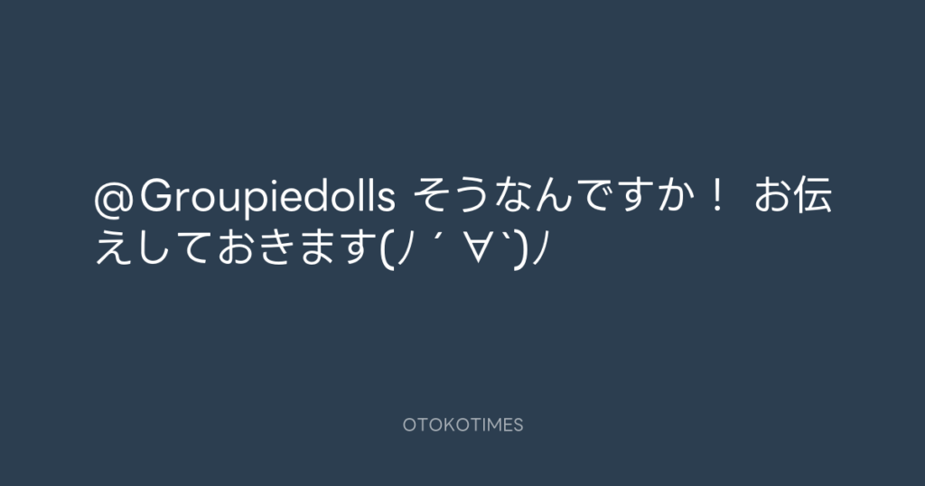 @Groupiedolls そうなんですか! お伝えしておきます(ノ´∀`)ノ -