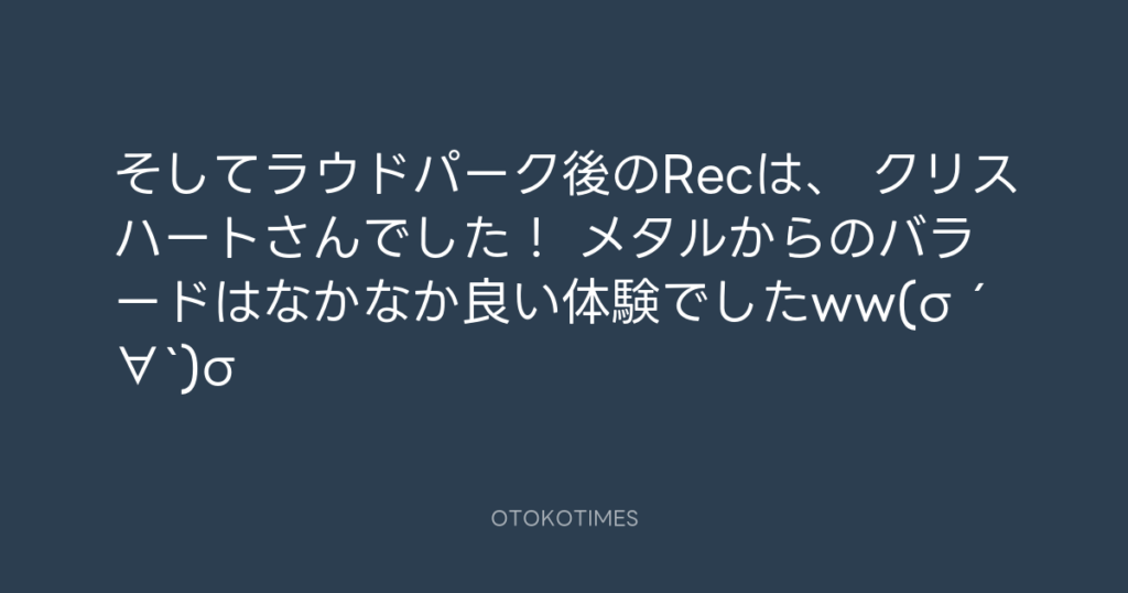 そしてラウドパーク後のRecは、 クリスハートさんでした! メタルからのバラードは...