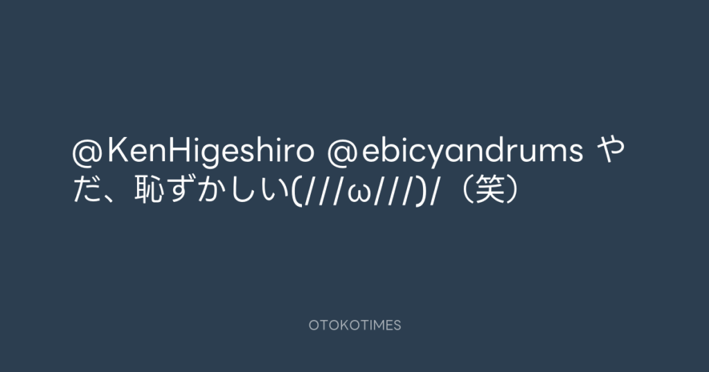 @KenHigeshiro @ebicyandrums やだ、恥ずかしい(///ω///)/(笑) -