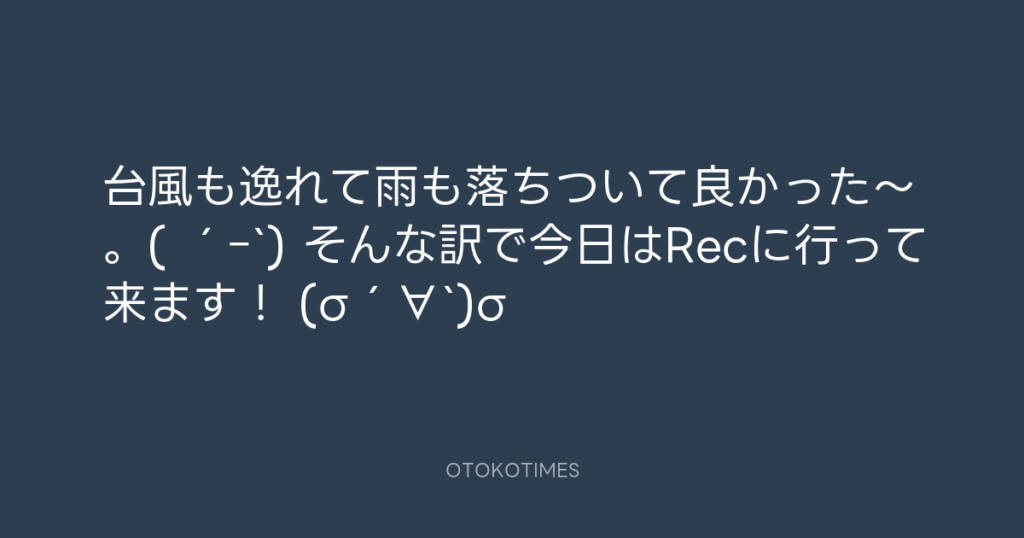 台風も逸れて雨も落ちついて良かった〜。( ´ー`) そんな訳で今日はRecに行って来ま... -