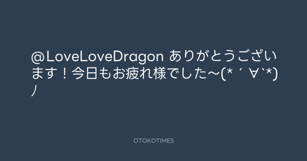 @LoveLoveDragon ありがとうございます!今日もお疲れ様でした〜(*´∀`*)ノ -