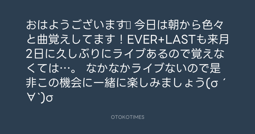 おはようございます☆ 今日は朝から色々と曲覚えしてます!EVER+LASTも来月2日に久... -