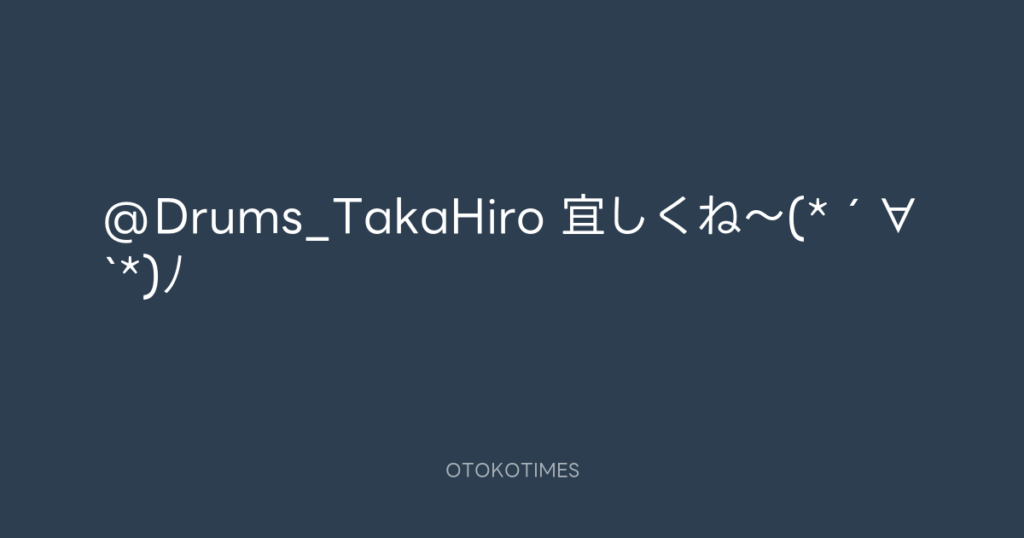 @Drums_TakaHiro 宜しくね〜(*´∀`*)ノ -
