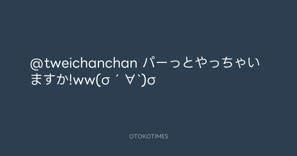 @tweichanchan パーっとやっちゃいますか!ww(σ´∀`)σ -
