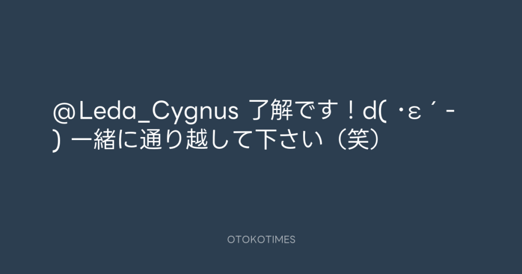 @Leda_Cygnus 了解です!d( ・ε´- ) 一緒に通り越して下さい(笑) -