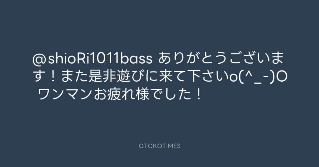 @shioRi1011bass ありがとうございます!また是非遊びに来て下さいo(^_-)O ワンマ... -