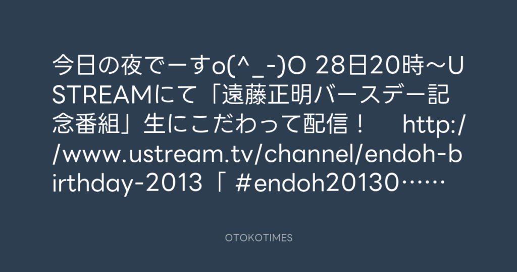 今日の夜でーすo(^_-)O 28日20時〜USTREAMにて「遠藤正明バースデー記念番組」生に... -
