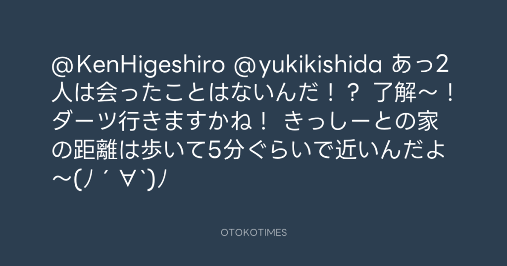 @KenHigeshiro @yukikishida あっ2人は会ったことはないんだ!? 了解〜!ダーツ行...