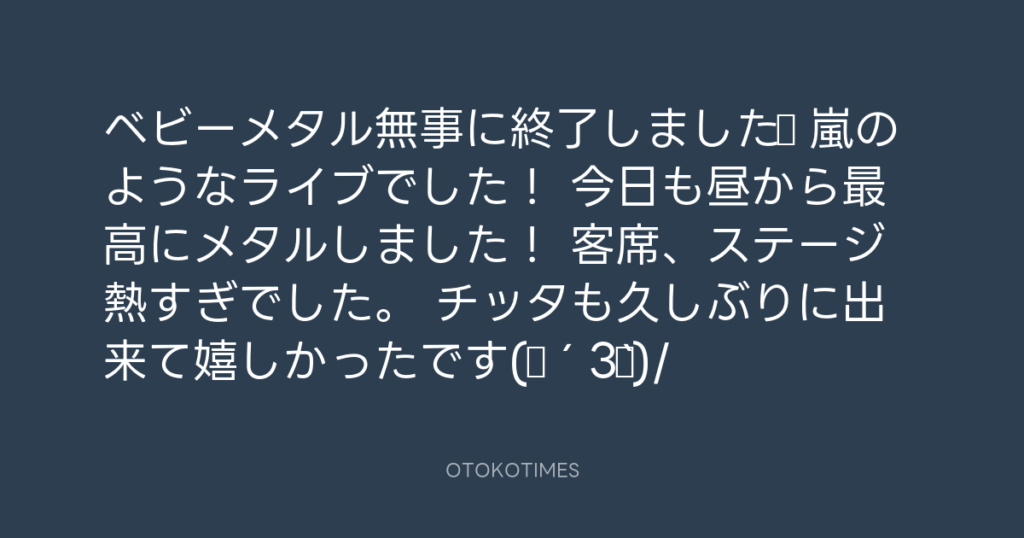 ベビーメタル無事に終了しました☆ 嵐のようなライブでした! 今日も昼から最高にメ... -