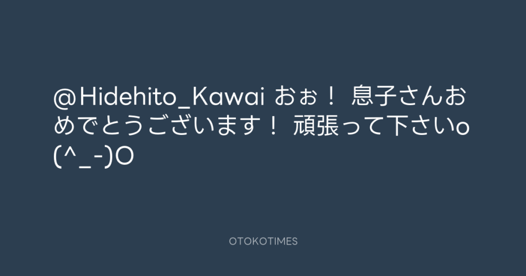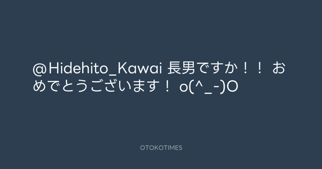 @Hidehito_Kawai 長男ですか!! おめでとうございます! o(^_-)O -