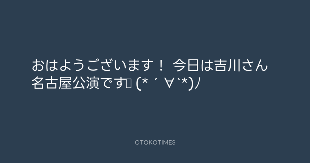 おはようございます! 今日は吉川さん名古屋公演です☆ (*´∀`*)ノ -