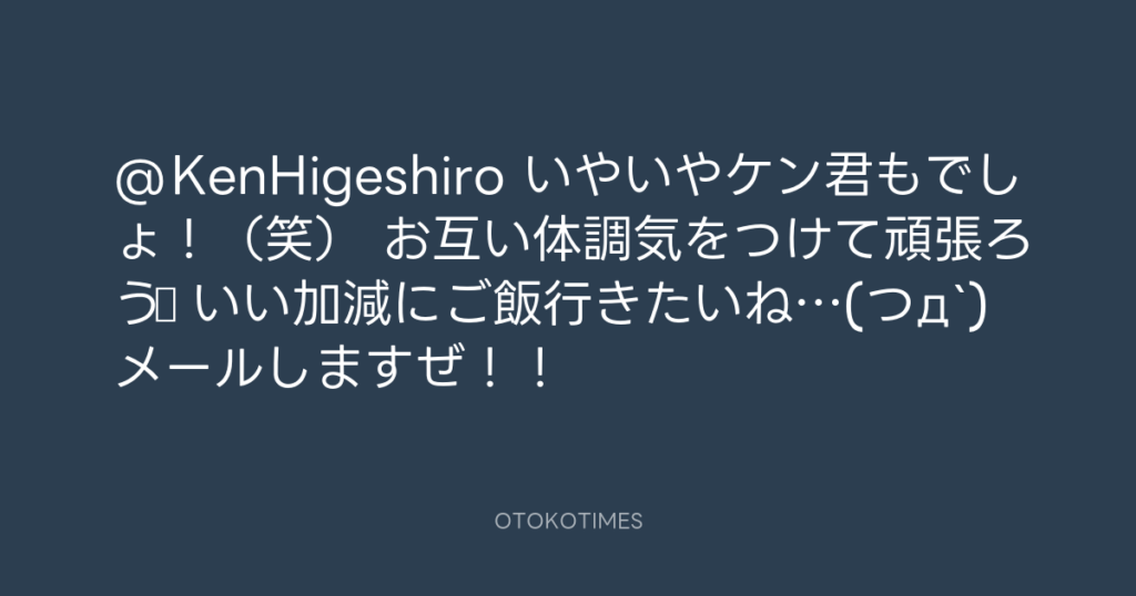 @KenHigeshiro いやいやケン君もでしょ!(笑) お互い体調気をつけて頑張ろう☆ い... -