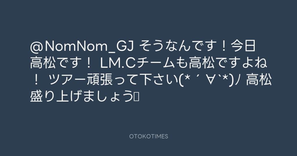 @NomNom_GJ そうなんです!今日高松です! LM.Cチームも高松ですよね! ツアー頑張... -