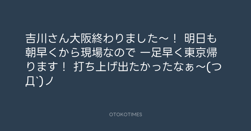 吉川さん大阪終わりました〜! 明日も朝早くから現場なので 一足早く東京帰ります... -