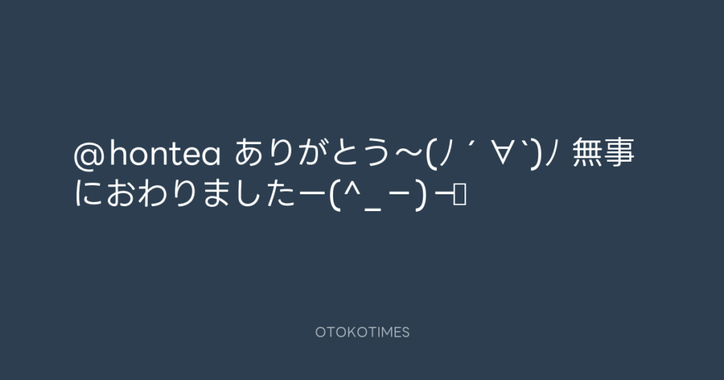 @hontea ありがとう〜(ノ´∀`)ノ 無事におわりましたー(^_−)−☆ -