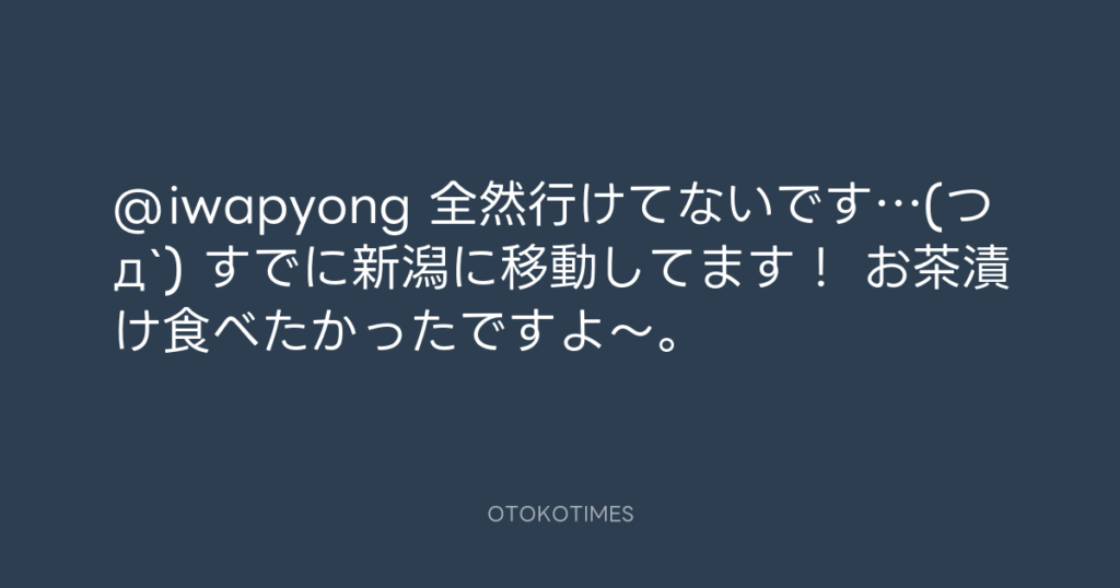 @iwapyong 全然行けてないです…(つд`) すでに新潟に移動してます! お茶漬け食べた... -
