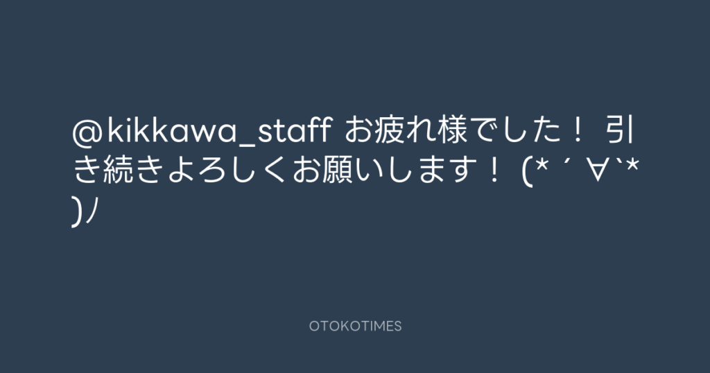 @kikkawa_staff お疲れ様でした! 引き続きよろしくお願いします! (*´∀`*)ノ -