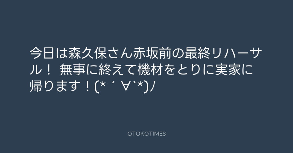 今日は森久保さん赤坂前の最終リハーサル! 無事に終えて機材をとりに実家に帰りま... -
