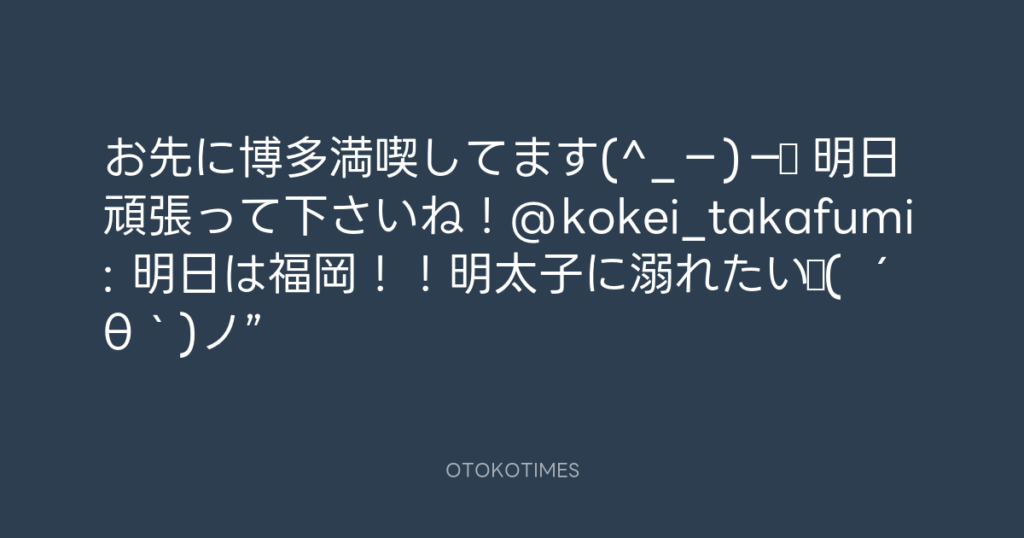 お先に博多満喫してます(^_−)−☆ 明日頑張って下さいね!@kokei_takafumi: 明日は福... -