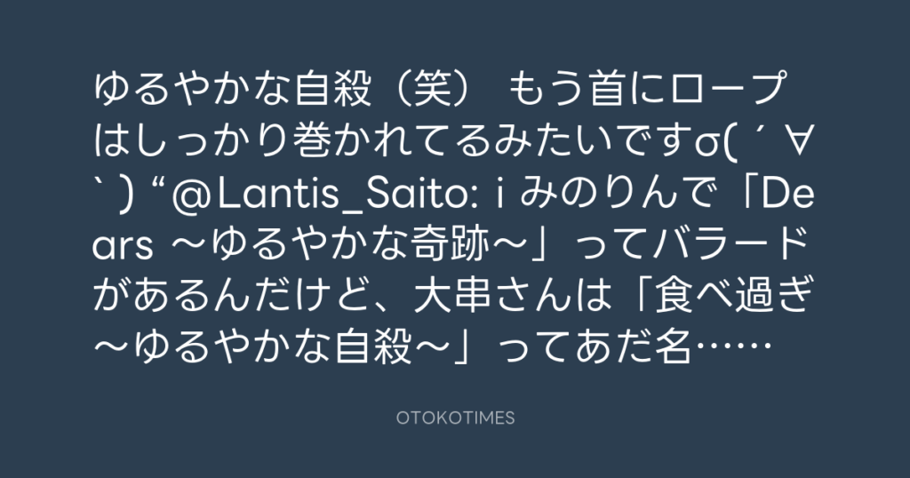 ゆるやかな自殺(笑) もう首にロープはしっかり巻かれてるみたいですσ(´∀` ) “@La... -