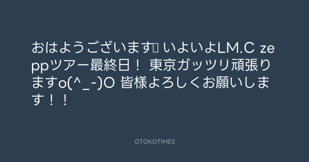 おはようございます☆ いよいよLM.C zeppツアー最終日! 東京ガッツリ頑張りますo(^... -