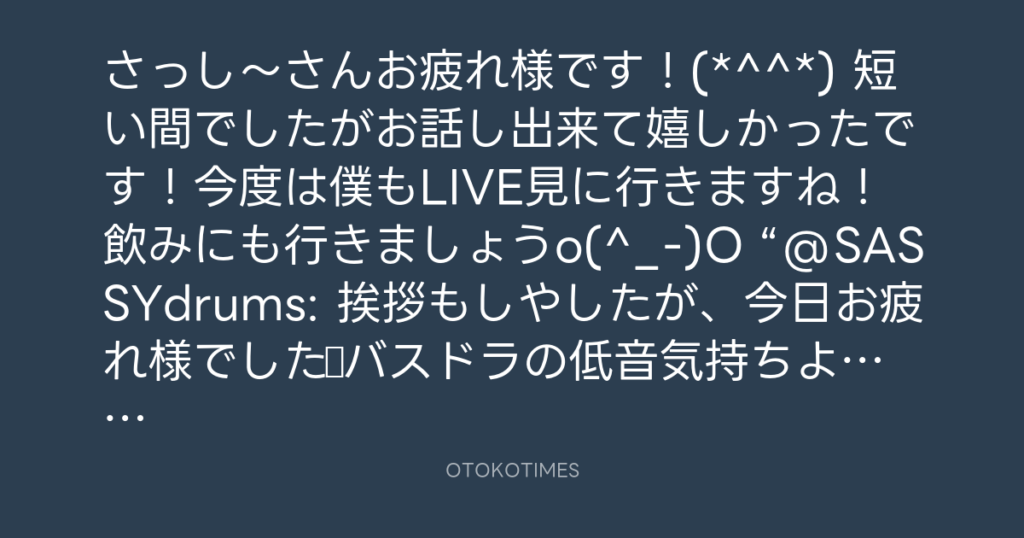 さっし~さんお疲れ様です!(*^^*) 短い間でしたがお話し出来て嬉しかったです!今... -