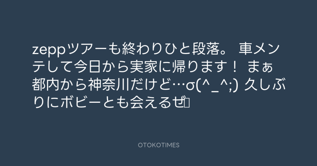 zeppツアーも終わりひと段落。 車メンテして今日から実家に帰ります! まぁ都内か... -