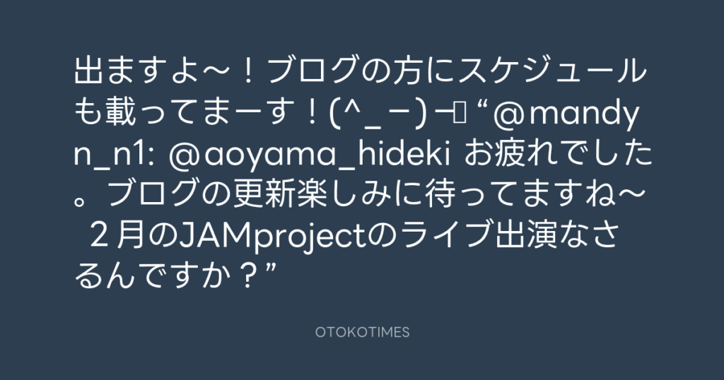 出ますよ~!ブログの方にスケジュールも載ってまーす!(^_−)−☆ “@mandyn_n1: @aoy... -