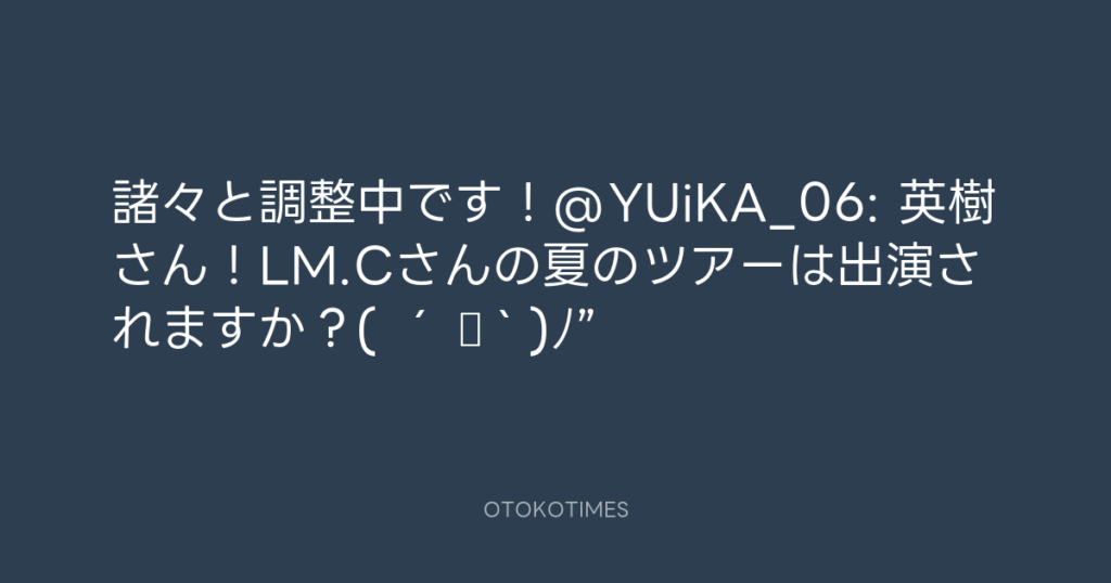 諸々と調整中です!@YUiKA_06: 英樹さん!LM.Cさんの夏のツアーは出演されますか?... -