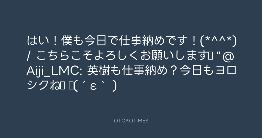 はい!僕も今日で仕事納めです!(*^^*)/ こちらこそよろしくお願いします☆ “@Aiji_...