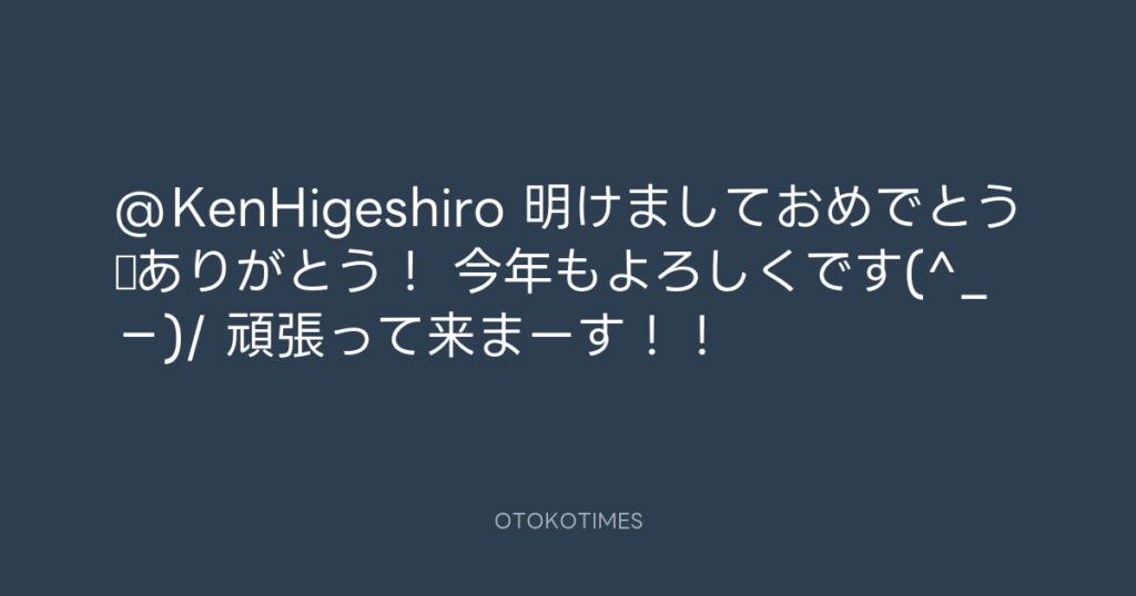 @KenHigeshiro 明けましておめでとう☆ありがとう! 今年もよろしくです(^_−)/ 頑張... -