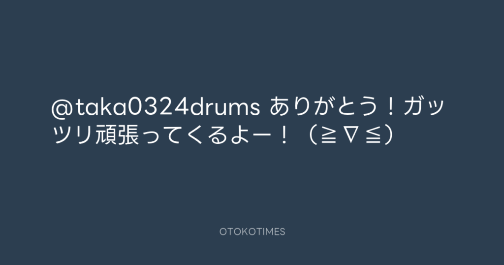 @taka0324drums ありがとう!ガッツリ頑張ってくるよー!(≧∇≦) -