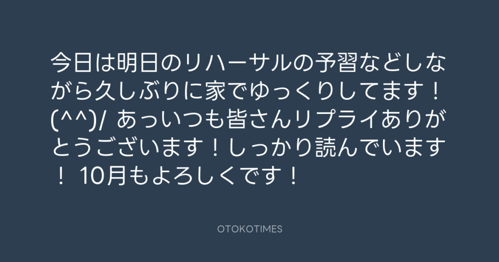今日は明日のリハーサルの予習などしながら久しぶりに家でゆっくりしてます!(^^)/... -