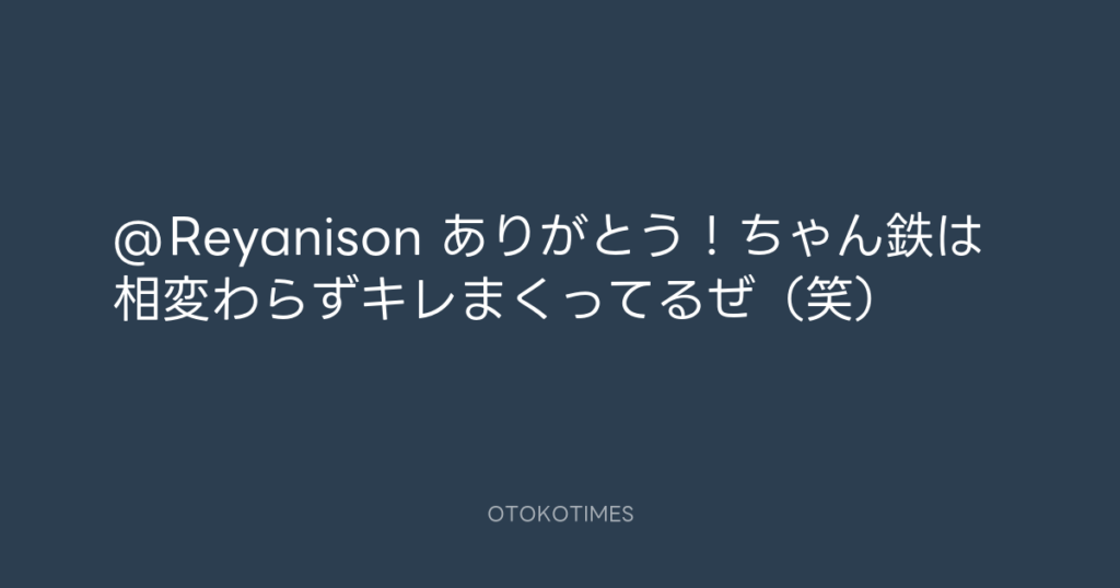 @Reyanison ありがとう!ちゃん鉄は相変わらずキレまくってるぜ(笑) -