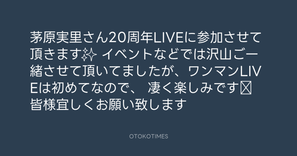 茅原実里さん20周年LIVEに参加させて頂きます✨ イベントなどでは沢山ご一緒させて... -