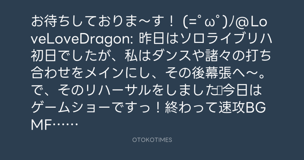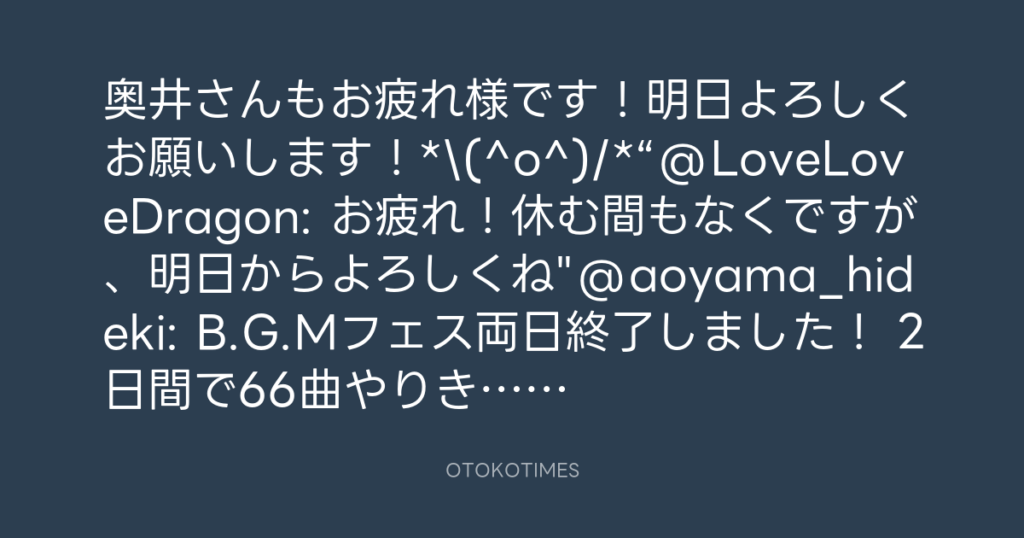 奥井さんもお疲れ様です!明日よろしくお願いします!*\(^o^)/*“@LoveLoveDragon: ... -