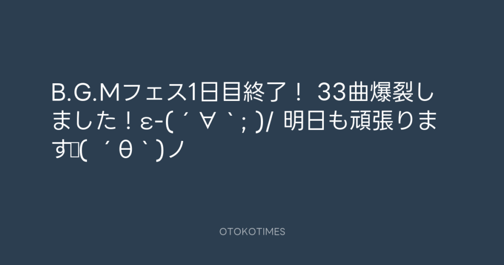 B.G.Mフェス1日目終了! 33曲爆裂しました!ε-(´∀`; )/ 明日も頑張ります♪( ´θ`)ノ -